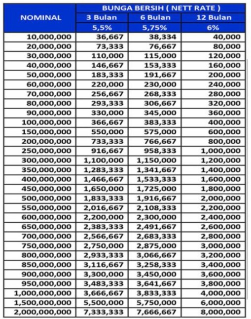 - Suku bunga deposito jangka waktu 3 Bulan sebesar 5,5%